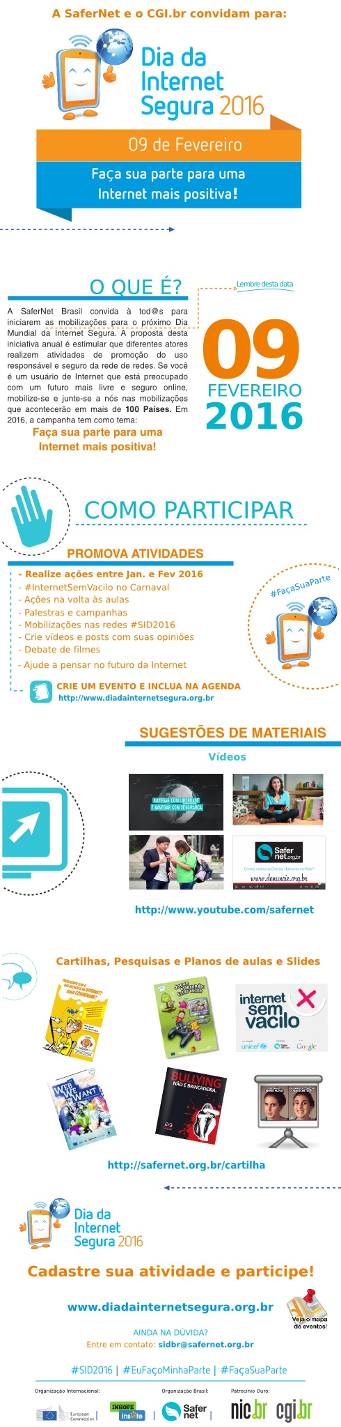 Começaram os preparativos para o Dia da Internet Segura, realizado pela Safernet com diversas parcerias, que ocorrerá em 09 de fevereiro. A proposta é a mobilizar diferentes pessoas e instituições para pensarem juntos ações que podem tornar o ambiente online mais seguro para todos.